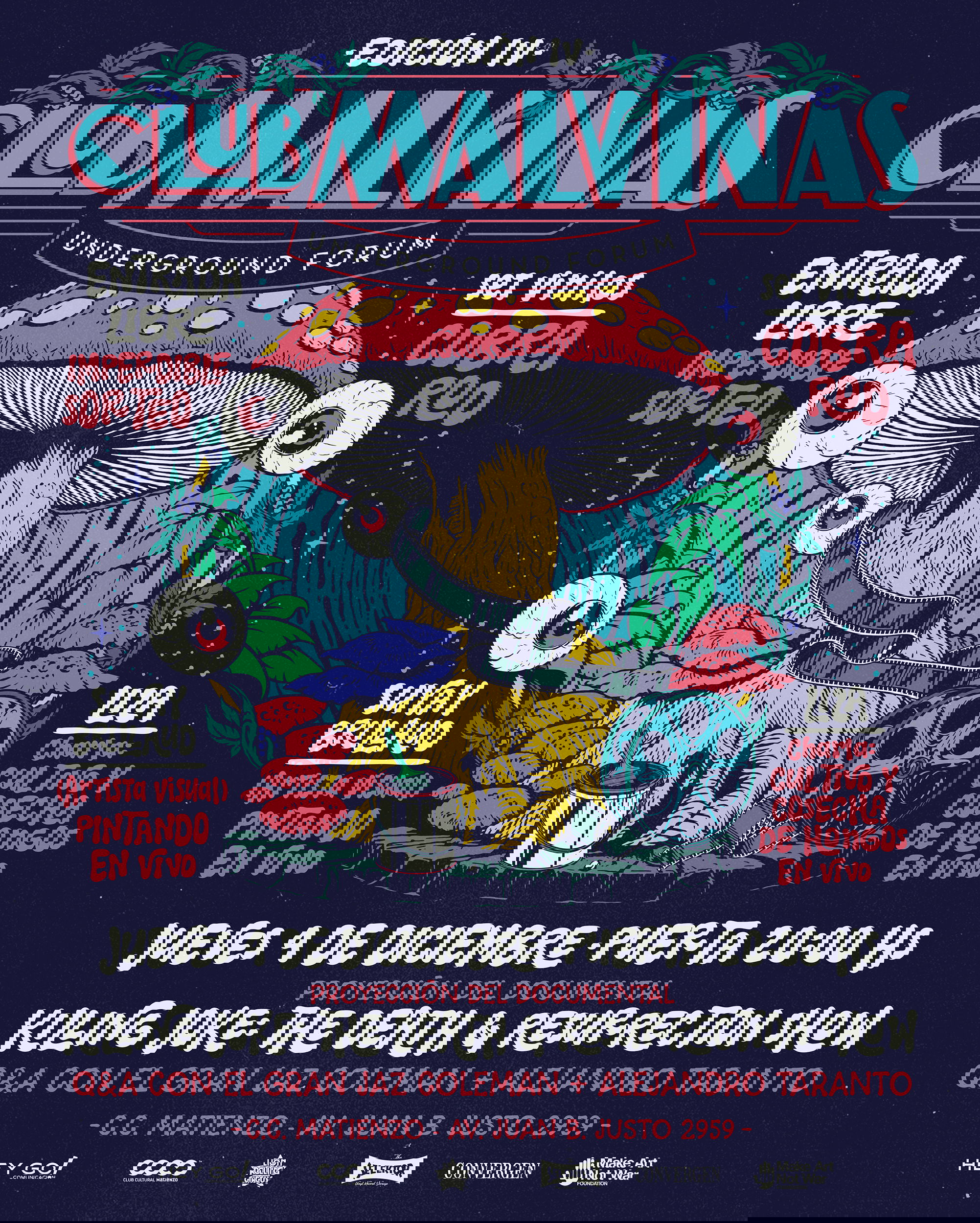La cuarta edición llega con una propuesta que sintetiza bien el espíritu del club: documental, música, arte en vivo y hasta una charla sobre cultivo de hongos. Todo convive sin forzar, porque la idea no es curar un line-up marketinero, sino abrir un espacio donde distintas formas de crear respiren juntas. El plato fuerte será la proyección de "The Death and Resurrection Show", el documental de Shaun Pettigrew sobre Killing Joke, seguido de una charla con Coleman moderada por Alejandro Taranto, de Tommy Gun Records. Ahí se va a hablar de música, claro, pero también de filosofía, de resistencia, de qué significa sostener una visión artística sin venderse por el camino.